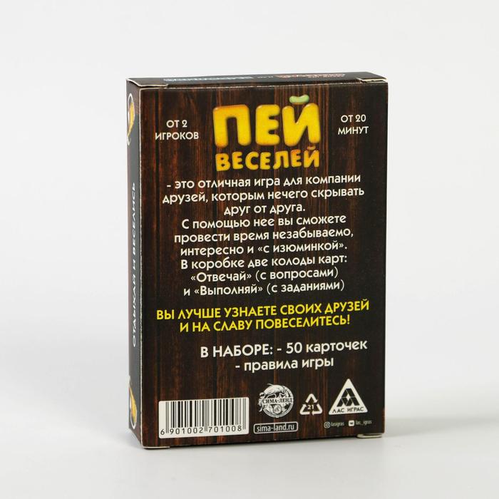 Купить игра для компании "пей веселей" 50 карт от 180 руб. с доставкой до пункта выдачи в Кизилюрте. Интернет магазин ДекаМаркет. Оплата при получении.